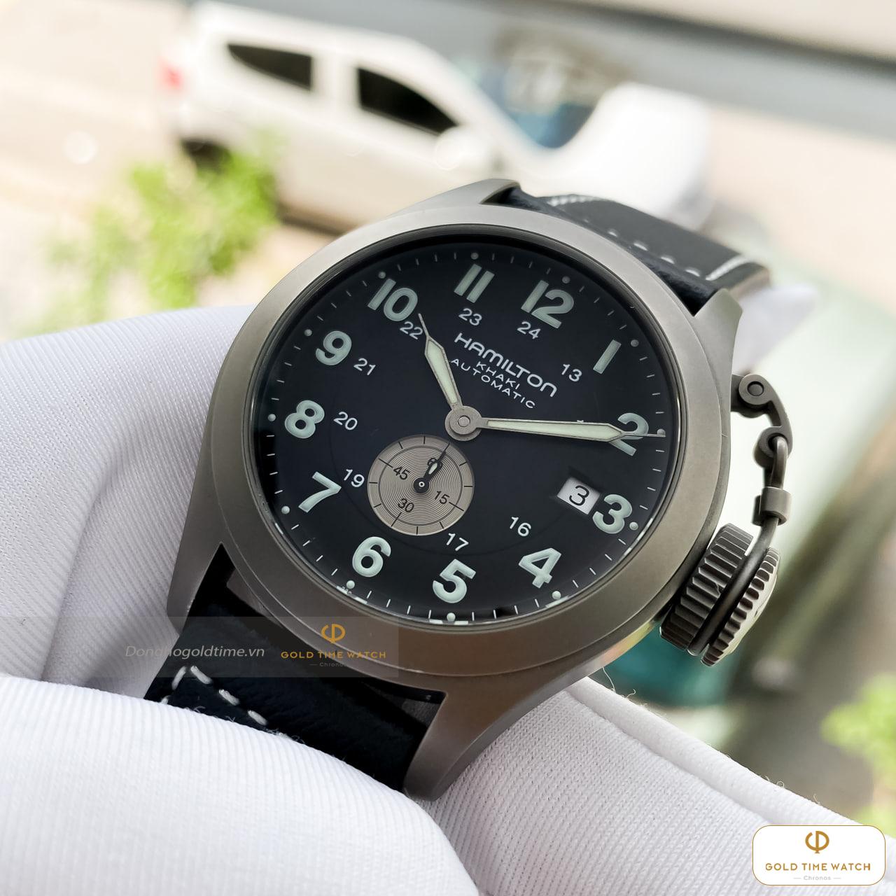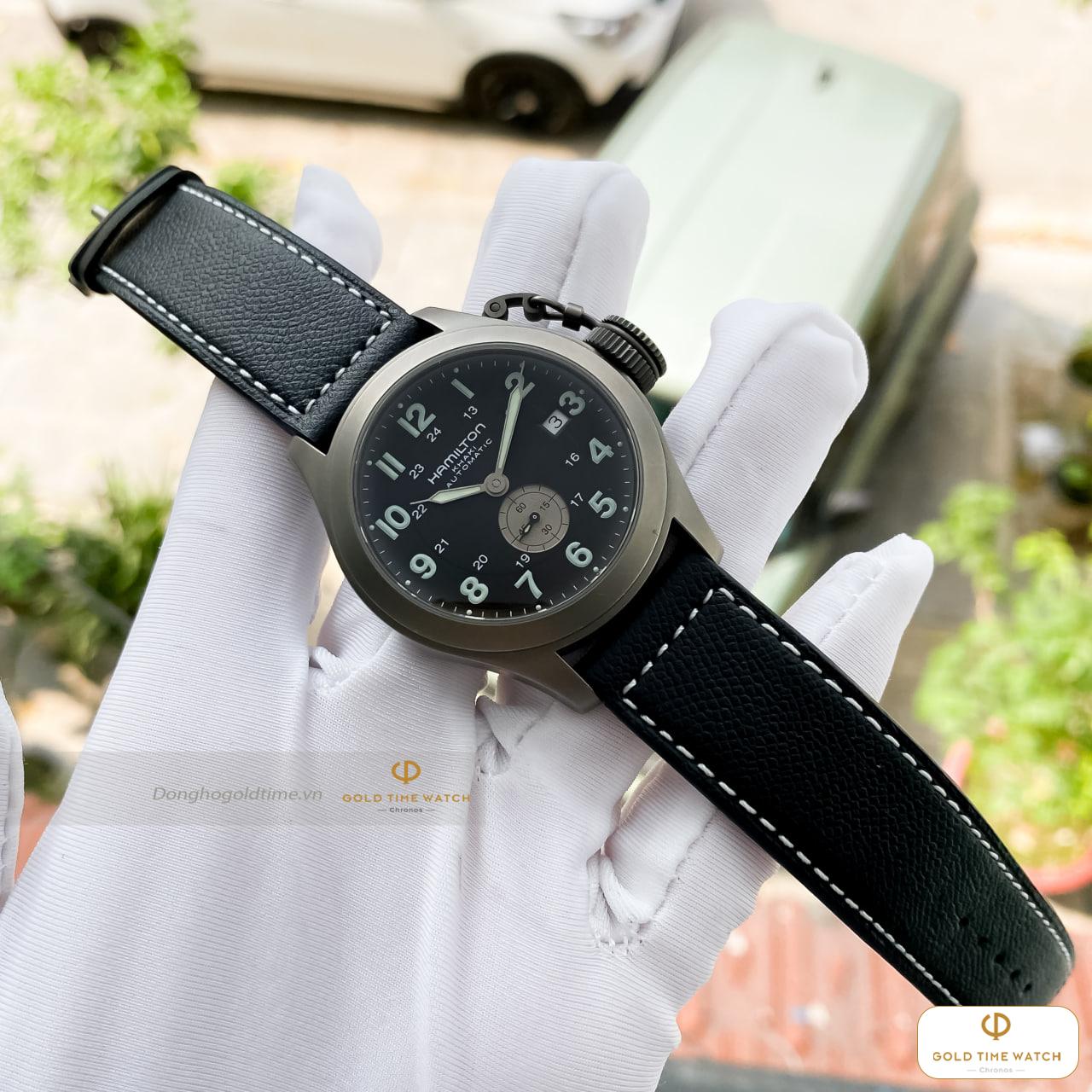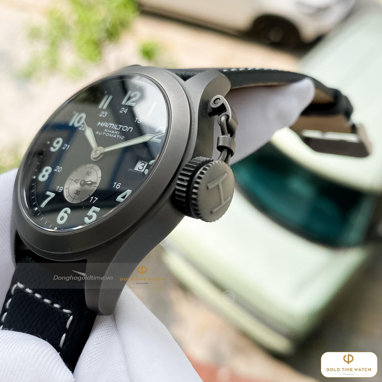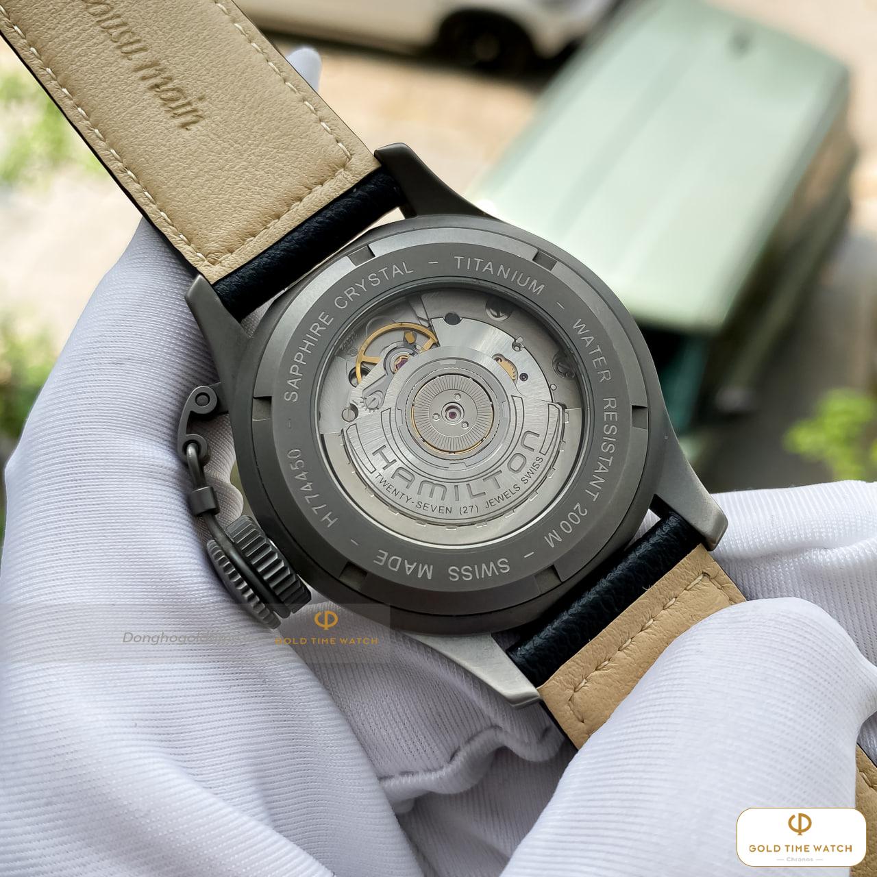 Khác với các dòng thép không gỉ thông thường, H774450 sở hữu lớp vỏ làm từ Titanium. Đây là vật liệu cao cấp giúp đồng hồ có trọng lượng siêu nhẹ, khả năng chống ăn mòn tuyệt vời và cực kỳ thân thiện với da tay, mang lại cảm giác đeo “nhẹ tựa lông hồng” suốt cả ngày dài.