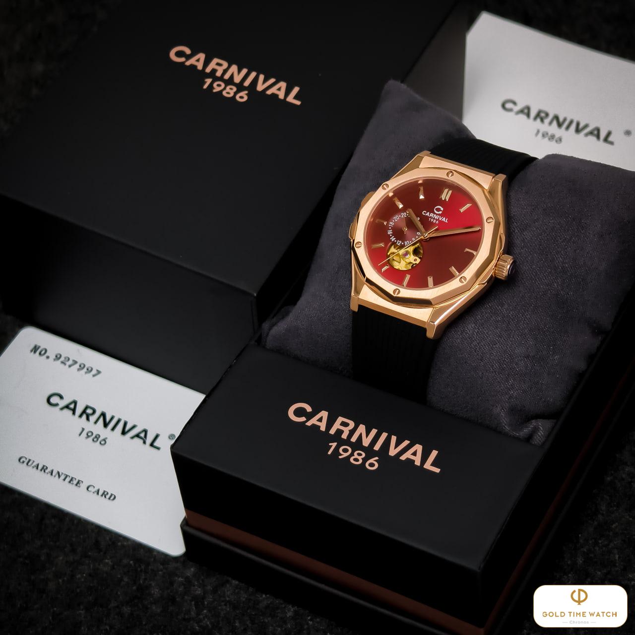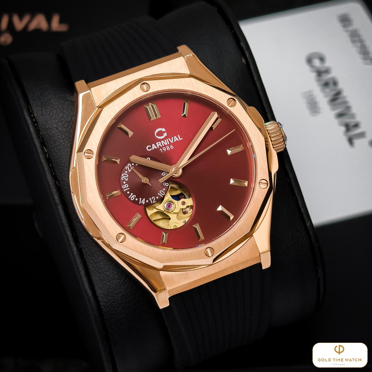 Chiếc Carnival 8189G-VH-DCS-DO là sự kết hợp táo bạo giữa phong cách thể thao mạnh mẽ và vẻ đẹp sang trọng tinh tế. Với thiết kế vỏ bát giác Rose Gold thời thượng cùng mặt số đỏ rượu vang đầy mê hoặc, đây chính là món phụ kiện giúp quý ông khẳng định phong cách khác biệt và sự lịch lãm.