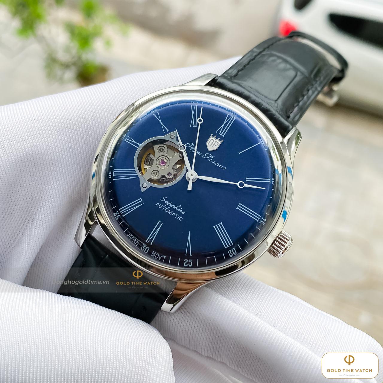 Nếu bạn đã quá quen thuộc với những mẫu mặt trắng hay đen cơ bản, hãy thử đổi gió với Olym Pianus OP99141-71AGS-GL-X. Sắc xanh Deep Blue sâu thẳm kết hợp cùng thiết kế lộ máy hở van tim chính là điểm nhấn giúp bạn nổi bật trong mọi hoàn cảnh.