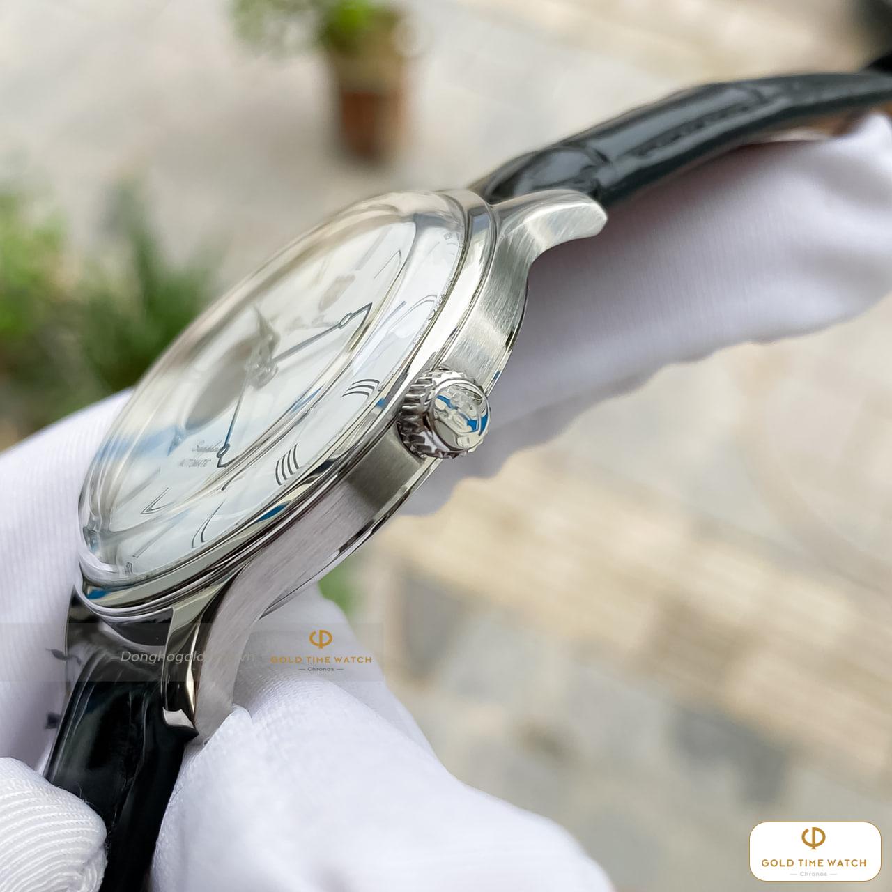 Mặt số trắng cọc số La Mã: Bộ số La Mã thanh mảnh trên nền dial trắng bạc tạo nên vẻ đẹp cổ điển, sang trọng, rất giống với dòng Master Collection của Longines.