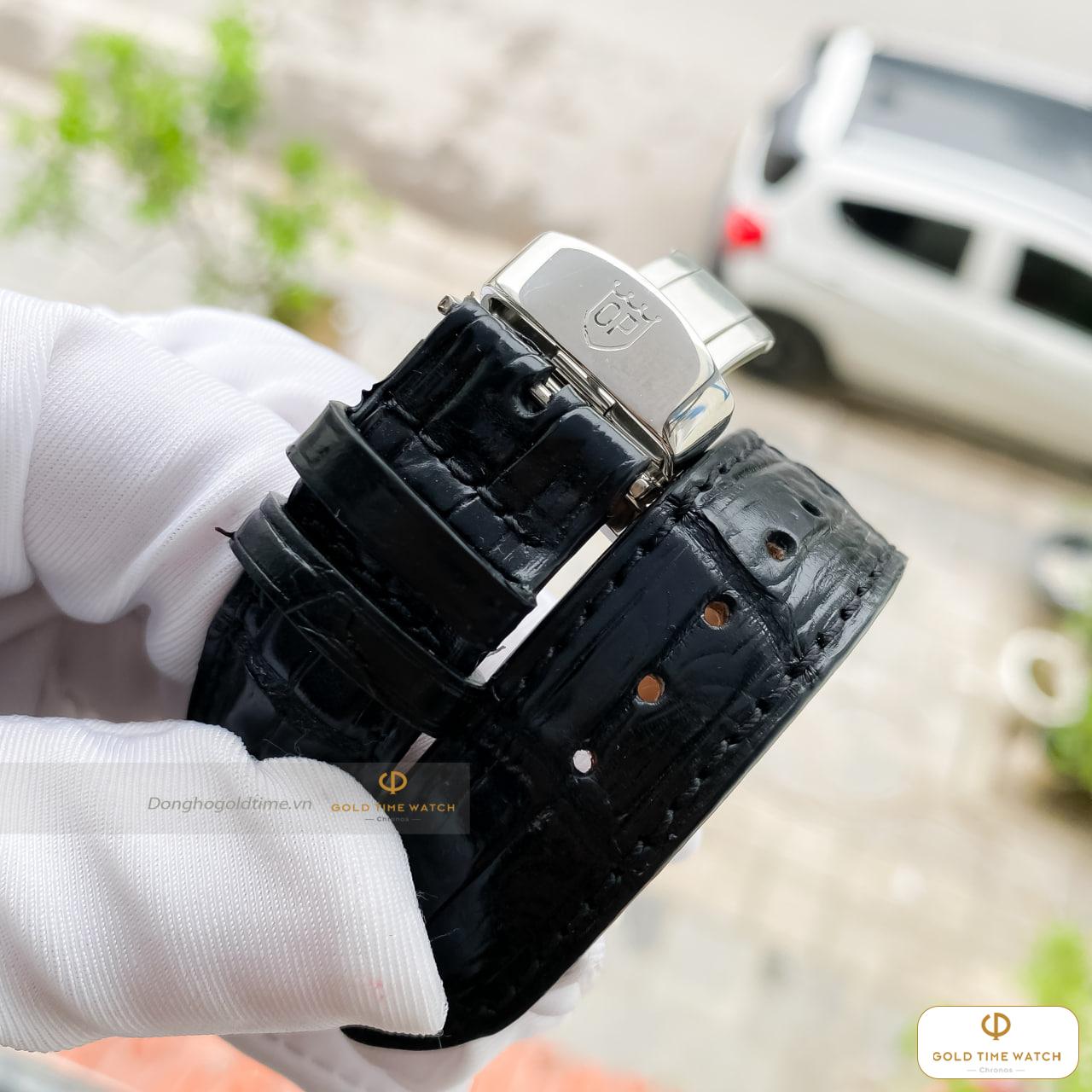 Dây da đen dập vân: Mang lại cảm giác nhẹ nhàng, ôm tay và cực kỳ dễ phối với sơ mi, quần tây.