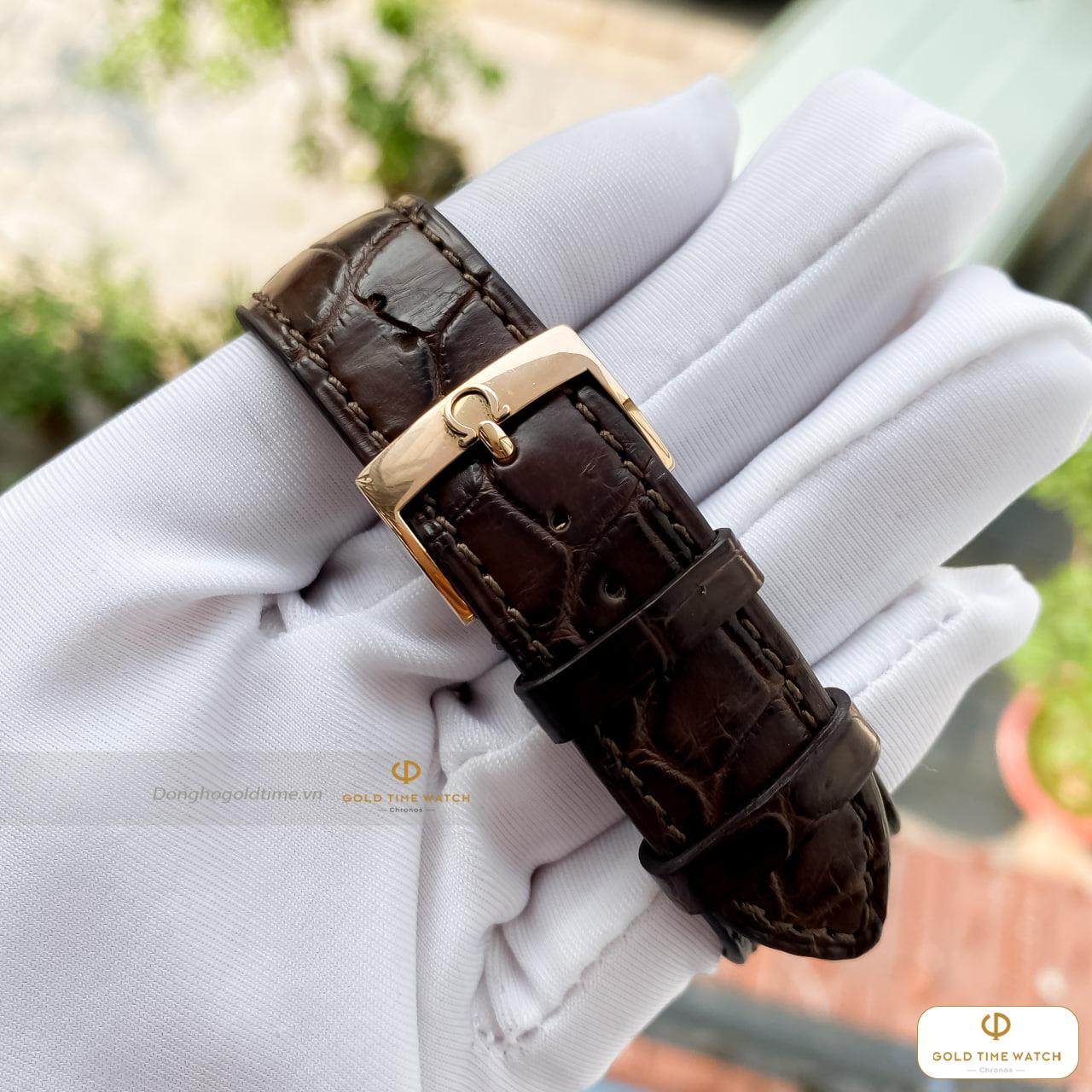 Nằm trong bộ sưu tập De Ville huyền thoại, mẫu đồng hồ này sở hữu bộ vỏ được chế tác hoàn toàn từ vàng hồng nguyên khối 18K. Sắc vàng hồng ấm áp không chỉ tôn lên vẻ quyền quý mà còn cực kỳ nịnh tay, phù hợp với màu da của đàn ông Việt.