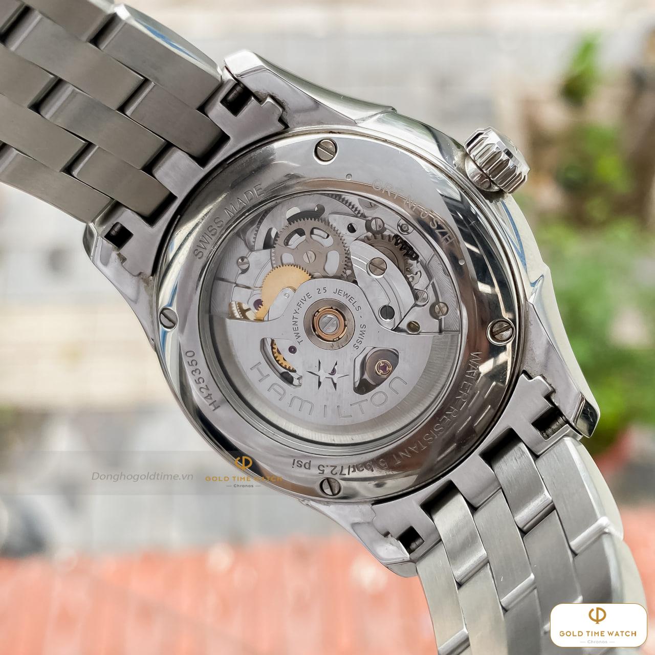 Điểm nhấn khác biệt nhất chính là cấu trúc mặt số được cắt gọt tinh xảo theo hình dáng chữ “H” cách điệu – biểu tượng của thương hiệu Hamilton. Toàn bộ chuyển động nhịp nhàng của các bánh răng, dây cót đều được phô diễn một cách nghệ thuật, mang lại trải nghiệm thị giác đầy lôi cuốn mỗi khi xem giờ.