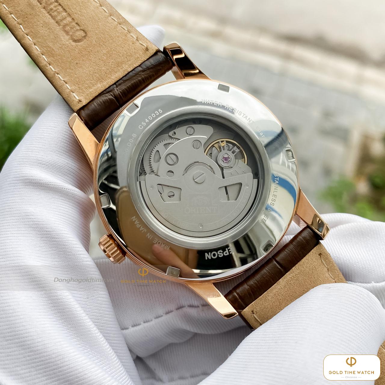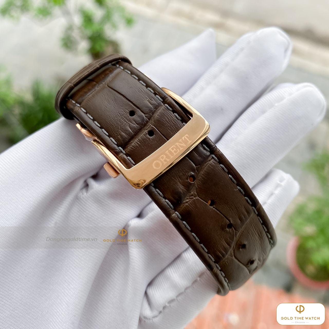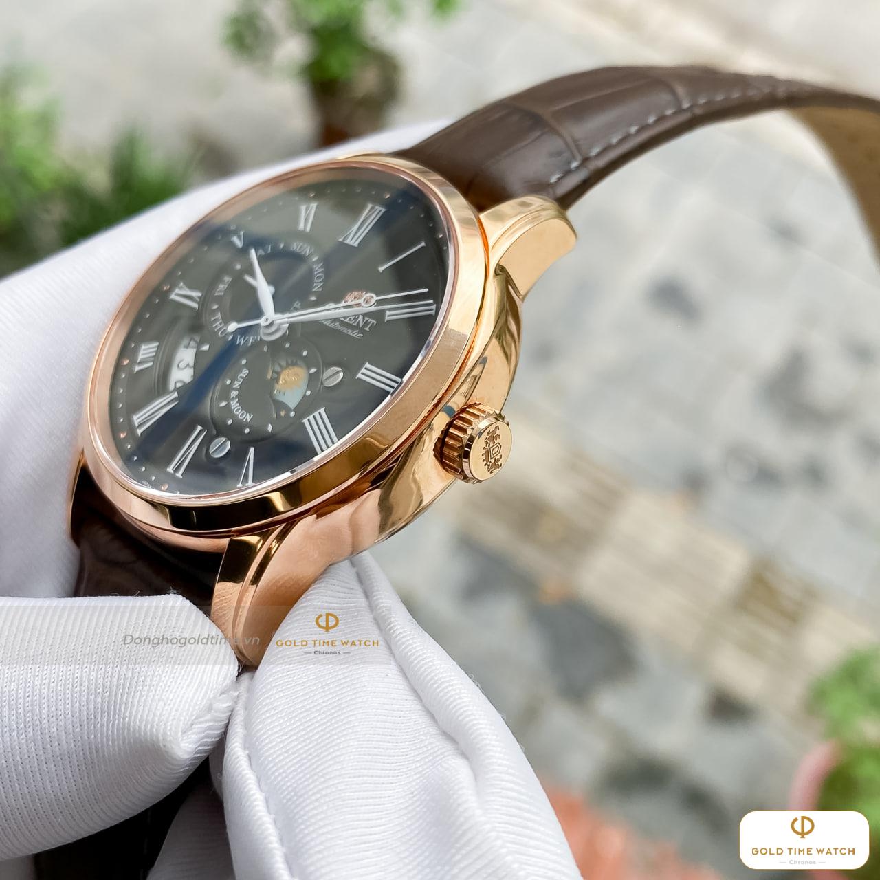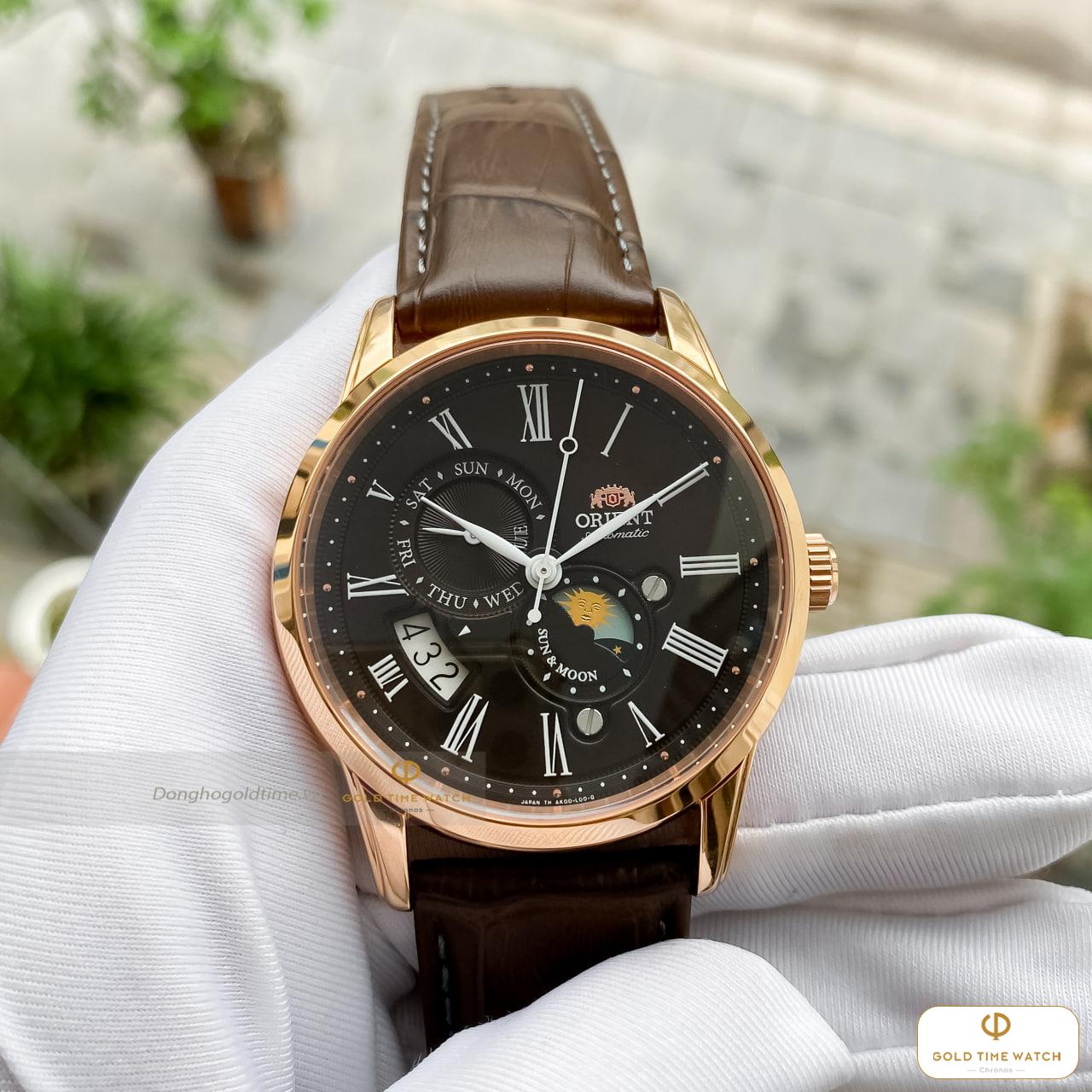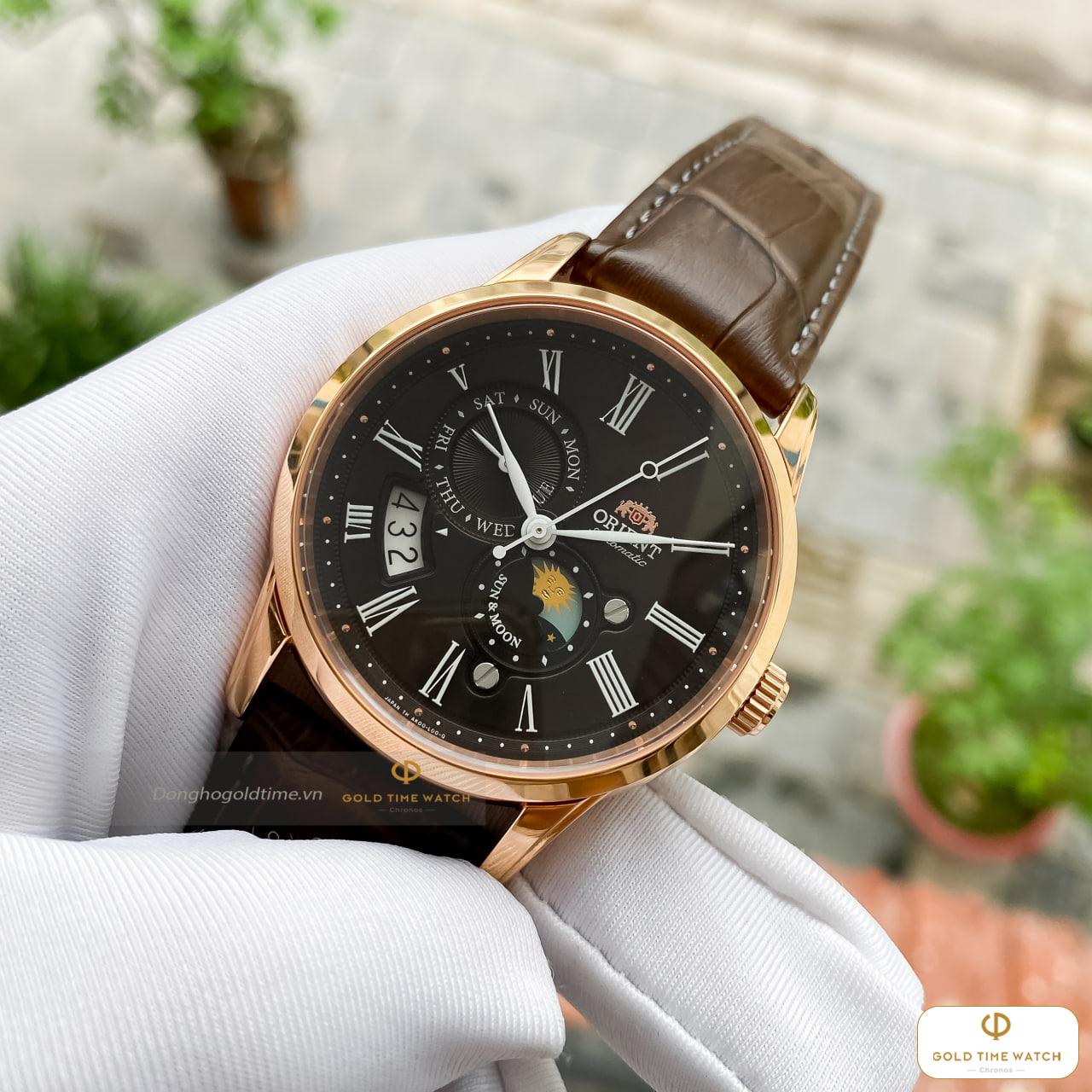 Nếu bạn đã quá quen thuộc với những mẫu mặt đen hay trắng, thì phiên bản Orient Sun and Moon Gen 3 RA-AK0009T30B với sắc nâu trầm ấm kết hợp vỏ mạ vàng hồng sẽ mang đến một làn gió hoàn toàn mới. Đây là mẫu đồng hồ “quốc dân” trong giới mộ điệu nhờ thiết kế độc bản và bộ máy cơ khí bền bỉ.