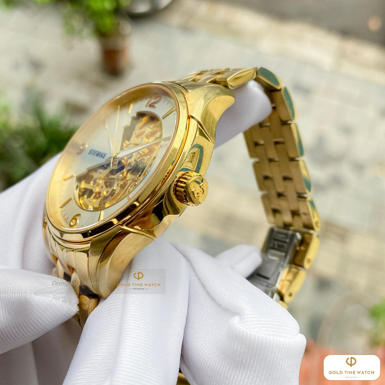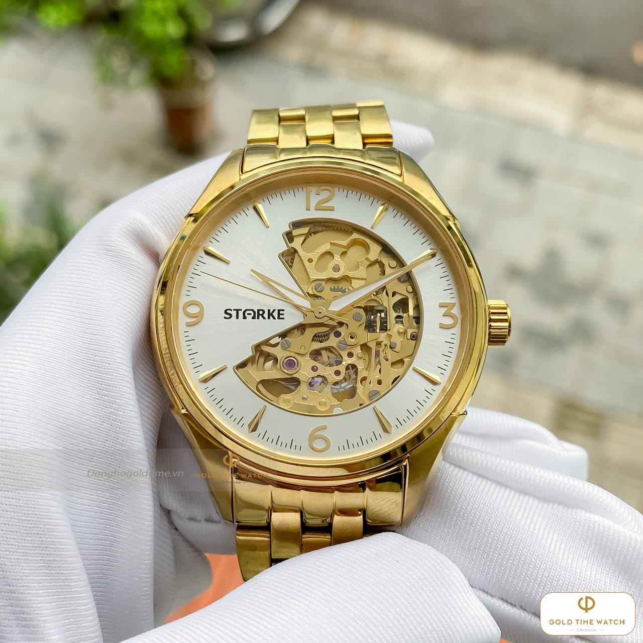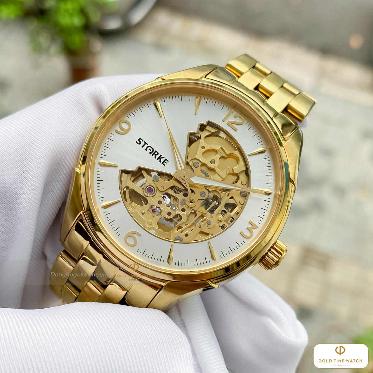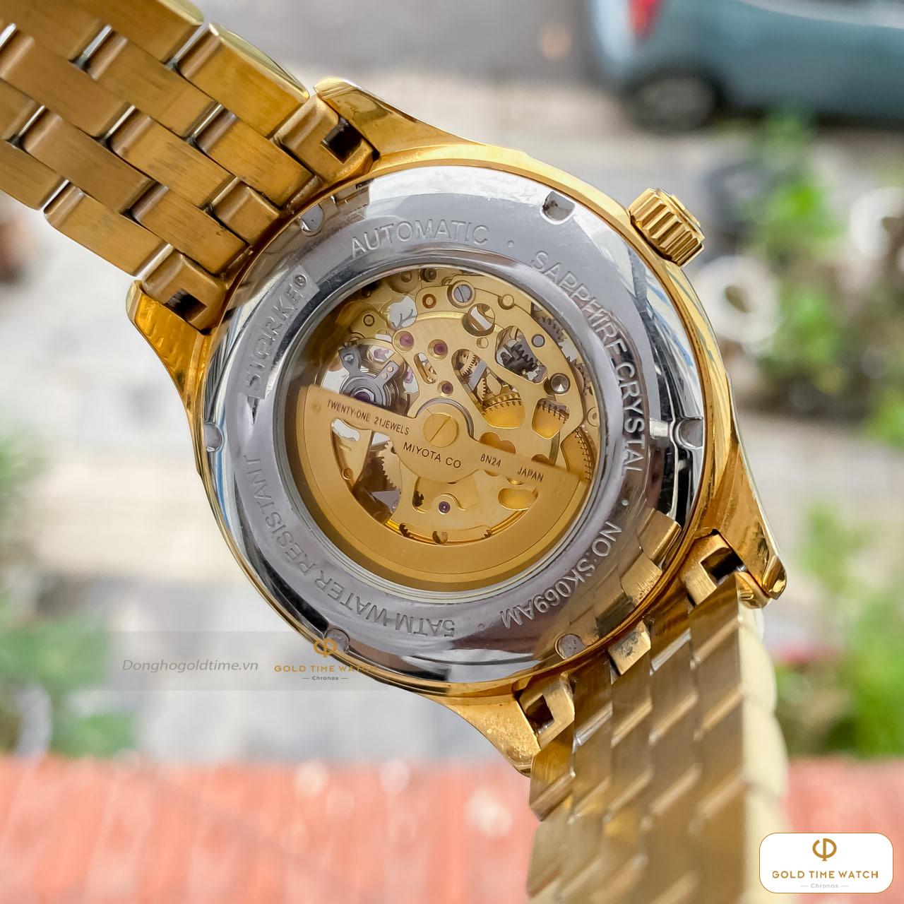 Điểm thu hút nhất của Starke SK069AM chính là ô cửa sổ “lộ tim” tại vị trí 9 giờ. Tại đây, bạn có thể chiêm ngưỡng nhịp đập liên tục của bộ máy cơ khí, mang lại cảm giác sống động và sang trọng hơn hẳn các dòng máy Quartz thông thường.